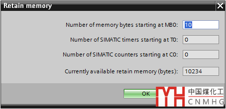 這樣我們就設(shè)置了從MB0到MB9總計(jì)10個(gè)字節(jié)的保持存儲(chǔ)區(qū),我們變量表中的相應(yīng)的變量后面的"保持(Retain)"屬性就被選中了,如下圖。