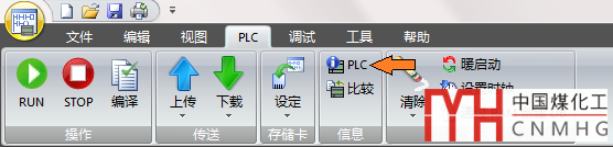 3、單擊菜單欄【PLC】選項(xiàng)卡的【PLC】按鈕: