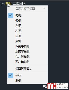 在CAD高版本的視口左上角就可以切換視圖,有些網(wǎng)友用先切換到左視圖再切換回俯視圖的方法來恢復(fù)世界坐標(biāo)系,這也不失一種方法。