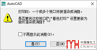 這只能說是AUTOCAD 2007對(duì)消隱或著色的消隱支持不太好,通常在出現(xiàn)下面提示對(duì)話框的時(shí)候,無論選擇是與否都可以正常打印,如下圖所示。