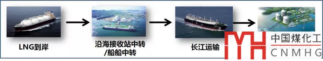 考慮到經(jīng)濟(jì)性和適航條件問題,理論上的運輸模式是遠(yuǎn)洋大型LNG運輸船將進(jìn)口LNG接卸至沿海LNG接收站,再通過沿海接收站將LNG中轉(zhuǎn)給內(nèi)河小型LNG運輸船,最后送至對應(yīng)內(nèi)河碼頭。