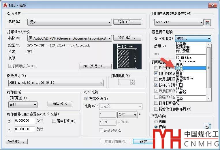 如果對三維模型的打印顏色和線寬和質(zhì)量沒有要求,可以直接模型空間或布局視口中的視覺樣式設(shè)置成隱藏。如果整圖都按照隱藏模式打印的話,可以不用在視口中設(shè)置,可以直接在打印對話框里設(shè)置,如下圖所示。