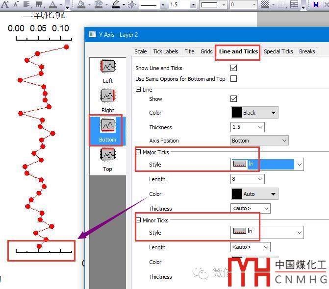 刪除圖層2底部坐標軸的標題與標簽,其Ticks方向為In