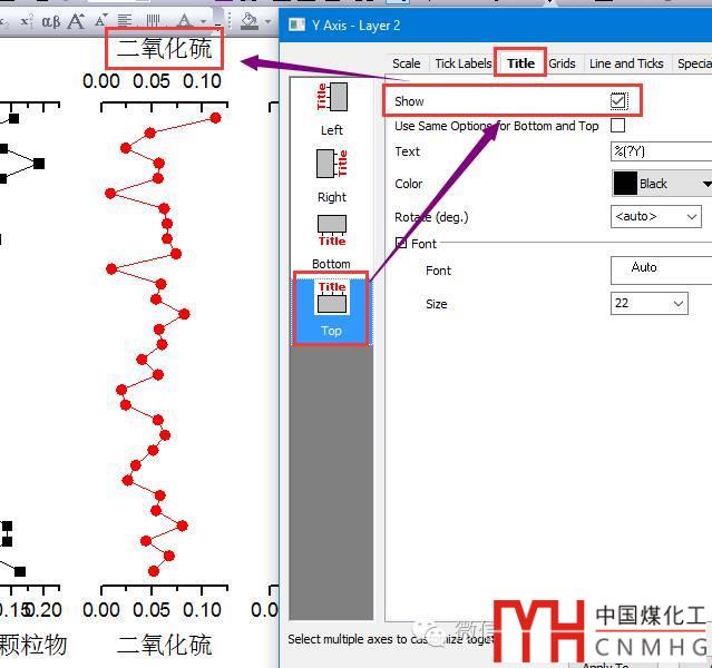 將圖層2和4的橫軸的標題和標簽顯示在上方