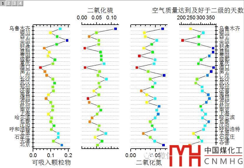 將圖層2-4鏈接到圖層1,其X軸的范圍設置為Straight (1 to 1),即具有相同的X軸范圍(再次提醒:豎向的軸(城市)依然是X軸,盡管變了位置)。