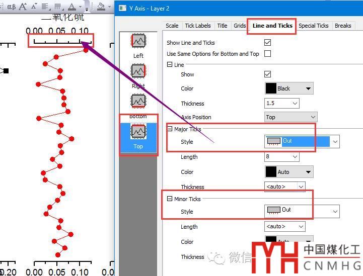 頂部坐標軸的Ticks方向為Out