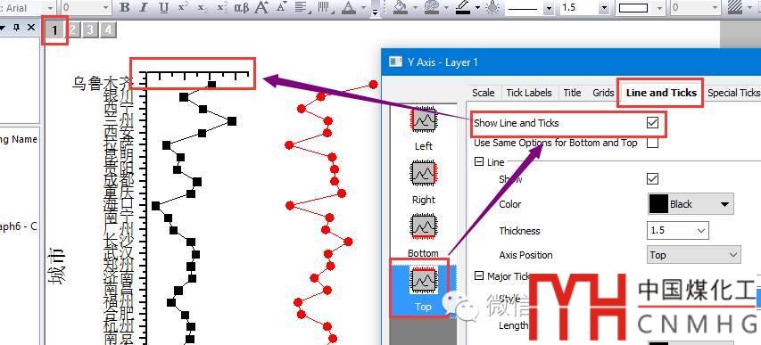 添加圖層1-4的頂部坐標軸(Top Axes),與顯示圖層4右側坐標軸的方法類似