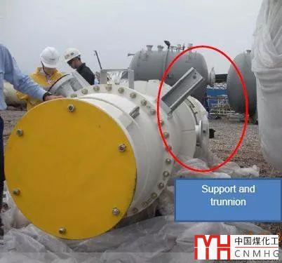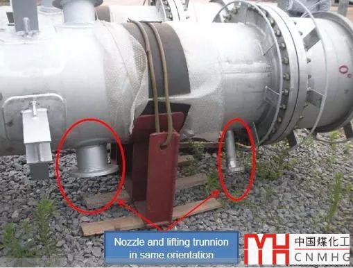 2.軸式吊耳上方,或斜上方有管子或者附件,在設(shè)備起吊過(guò)程中,吊索無(wú)法繞過(guò)上部管子或者附件。