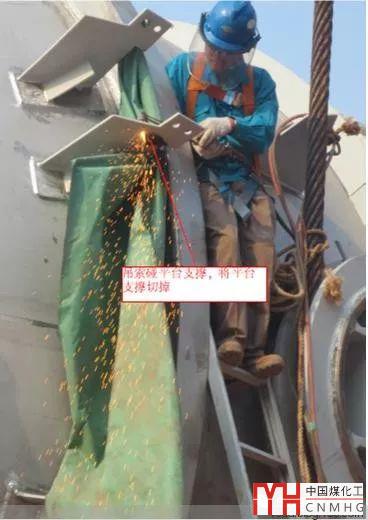 上圖吊索在起吊過(guò)程中會(huì)碰平臺(tái)支耳,需要先切割掉,待吊裝后再焊接。