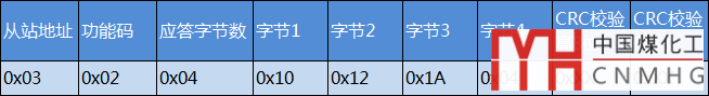 從站應(yīng)答數(shù)據(jù)包括:從站地址+功能碼+應(yīng)答字節(jié)數(shù)+寄存器1高字節(jié)+寄存器1低字節(jié)+...+寄存器N高字節(jié)+寄存器N低字節(jié)