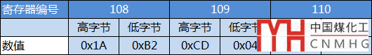 假設(shè)編號108~110保持寄存器的數(shù)值如下圖所示: