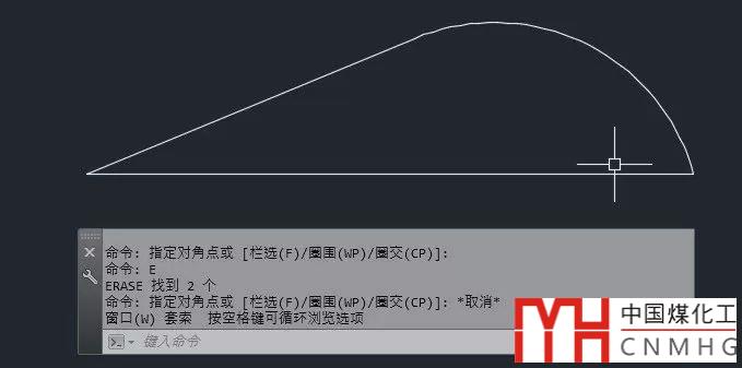 5、輸入TR回車,執(zhí)行修剪命令,回車,將所有圖形作為修剪邊界,依次單擊斜線和圓弧多余部分,然后將多余部分刪除E,得到剩余圖形,如下圖所示。
