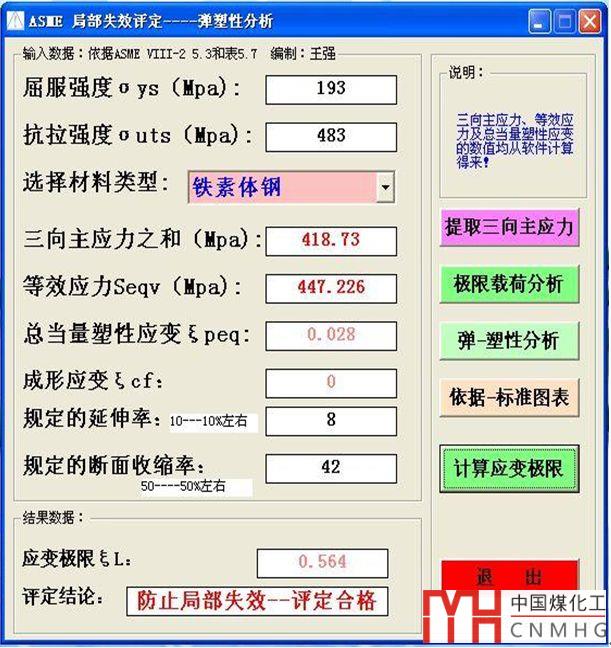 接著根據(jù)計(jì)算結(jié)果,確定三軸向應(yīng)變的極限,按照標(biāo)準(zhǔn)要求,如果當(dāng)量塑形應(yīng)變與成型應(yīng)變之和小于等于三軸向應(yīng)變的極限,則滿足局部強(qiáng)度要求。至此,彈塑性分析全部完成。