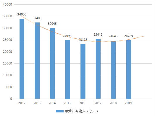 圖2-5 2012~2019年全國(guó)規(guī)模以上煤炭企業(yè)主營(yíng)業(yè)務(wù)收入