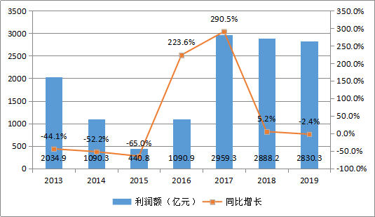 圖2-6 2013~2019年全國(guó)規(guī)模以上煤炭企業(yè)利潤(rùn)額及增速