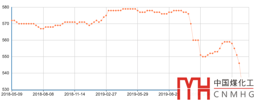 圖2-4 秦皇島港煤炭?jī)r(jià)格情況(單位:元/噸)