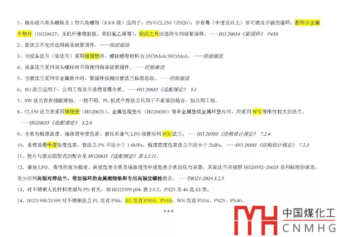 標準中關(guān)于管法蘭墊片、緊固件的規(guī)定較為分散,總結(jié)了一下,一些條款為經(jīng)驗或通行做法,并沒有具體的標準條文依據(jù),供參考。