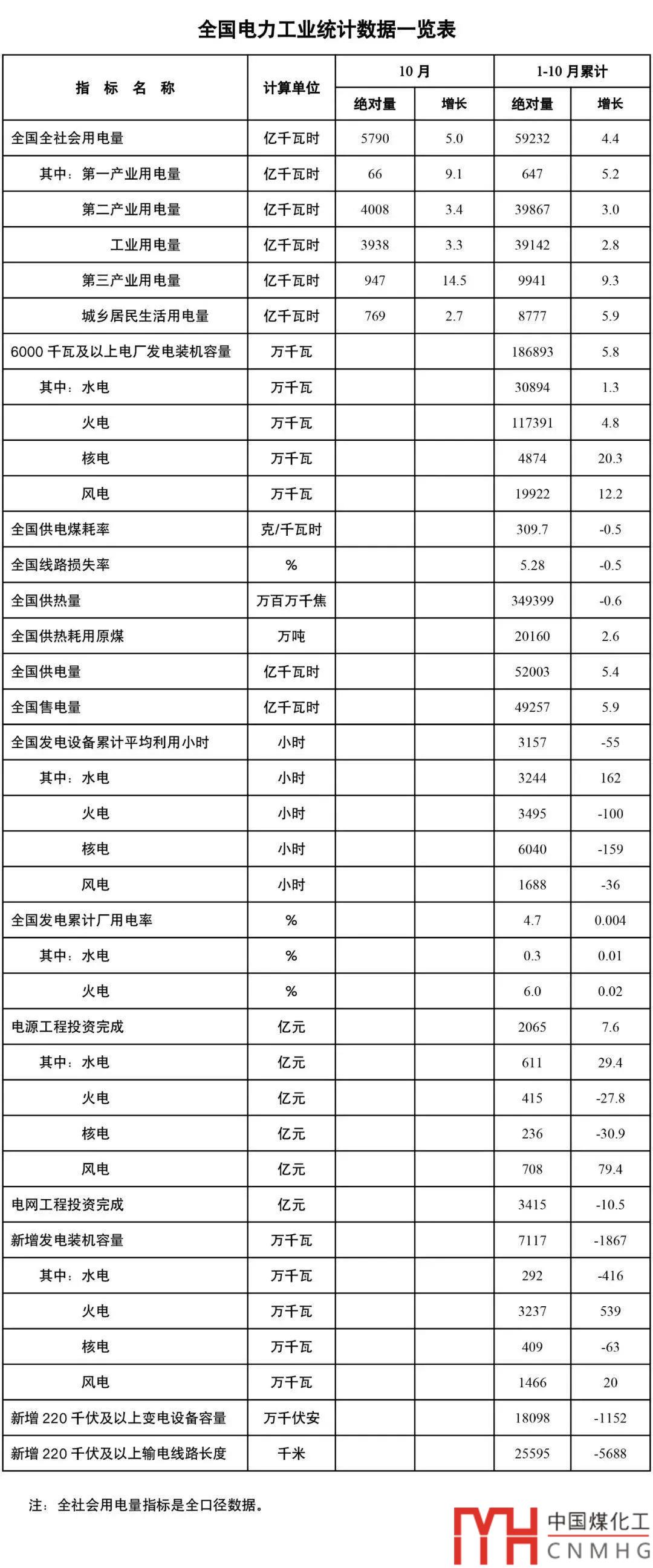 數(shù)據(jù) | 國(guó)家能源局發(fā)布1-10月份全國(guó)電力工業(yè)統(tǒng)計(jì)數(shù)據(jù)