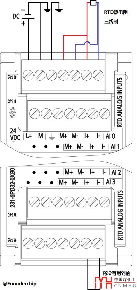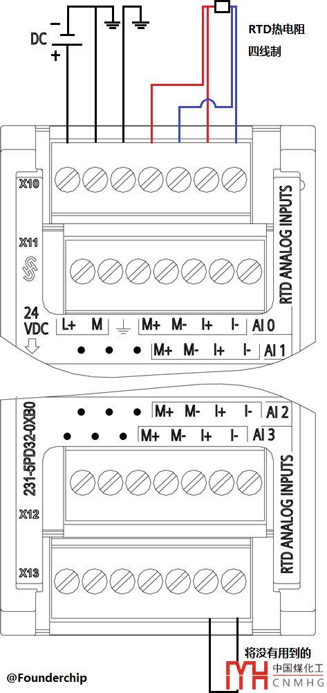 以端子排X10為例,其4~7號端子為RTD通道0的接線端子。