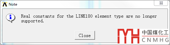 選擇了link180單元,然后選擇實常數(shù),程序警告:
