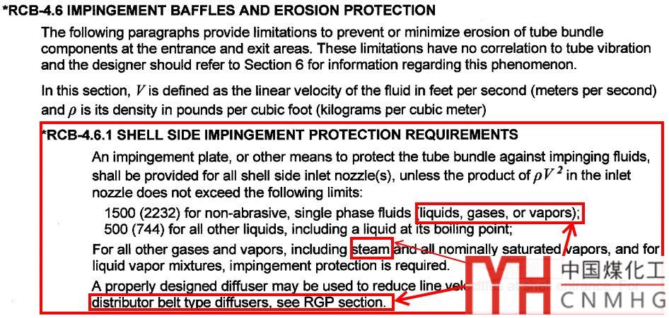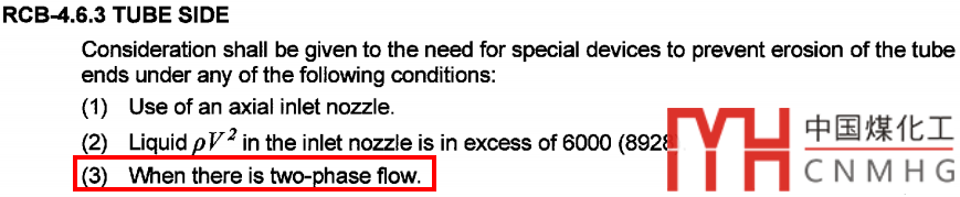 解讀:管程防沖結構增加兩相流體+軸向入口接管+ρv2值任一個滿足時,就需設置。
