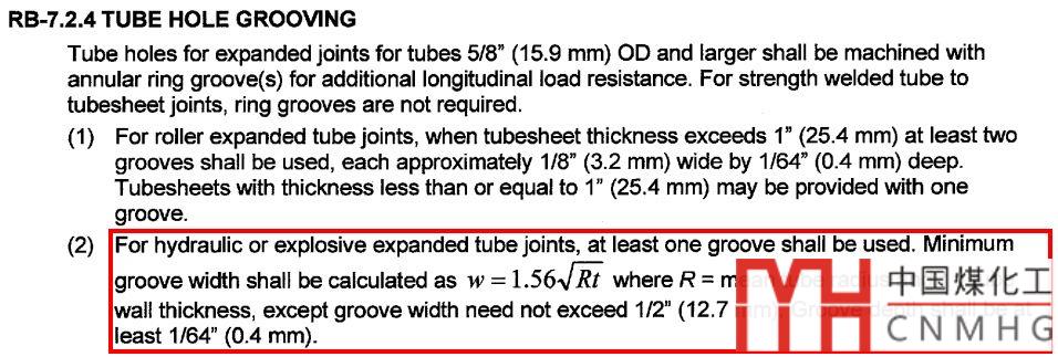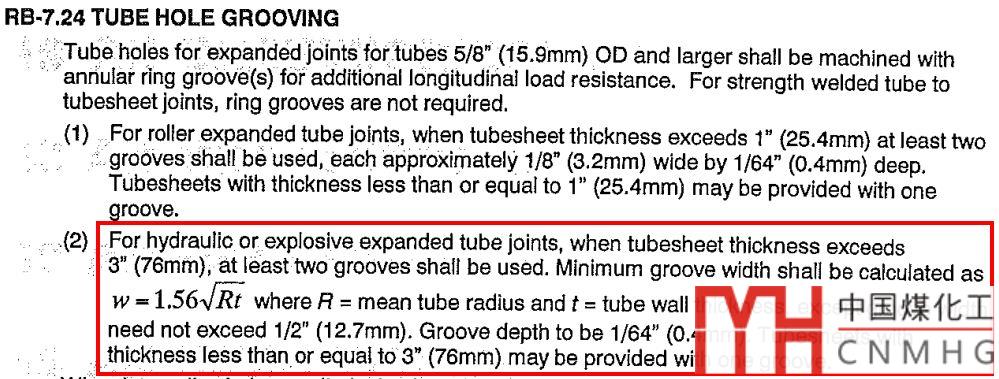 解讀:對于液壓或爆炸脹管的管板孔槽的要求進行了修改。刪除了大于76mm必須要開兩個槽的要求。