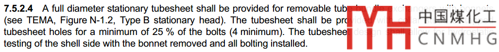 解讀:帶肩螺栓一般用在可抽管束。TEMA的數(shù)量要求和API660差不多,也是25%,至少4個。
