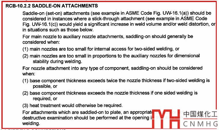 解讀:新增了何時應考慮采用UW-16.1的安放式接管。一般是殼體壁厚太厚或者接管直徑太小時,可以選用安放式接管。