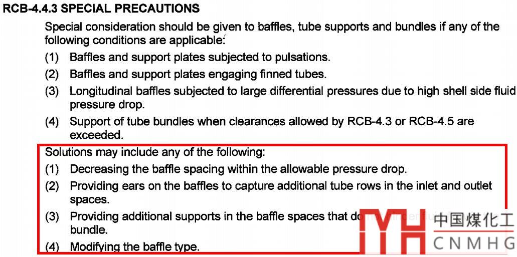 解讀:對于RCB-4.4.3條中,1-4條的情況,應當如何考慮折流板,支持板和管束的振動,TEMA給出了4條建議: