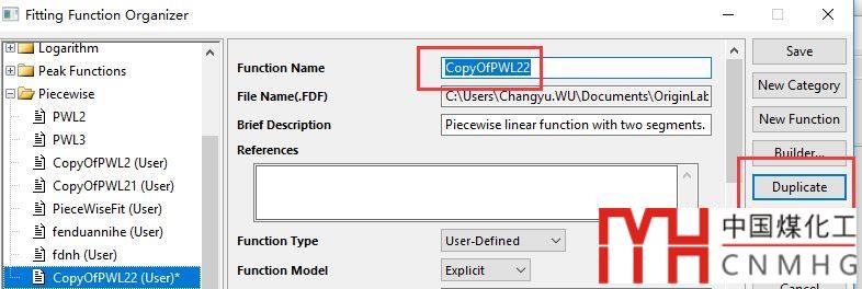 【關(guān)鍵步驟,詳見文后操作視頻】依次修改Function Name,Parameter Names(xi是分段函數(shù)的分段點),Function(基于OriginC寫的if-else函數(shù)),和Parameters Initiation(如果不會編程,清空),Derivatived Parameters(本教程沒用到,清空)。
