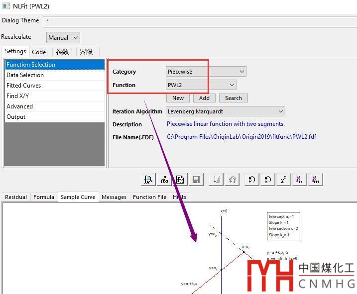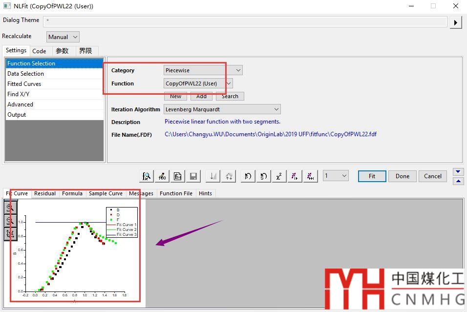 選擇擬合函數(shù),上面自定義的分段擬合函數(shù)