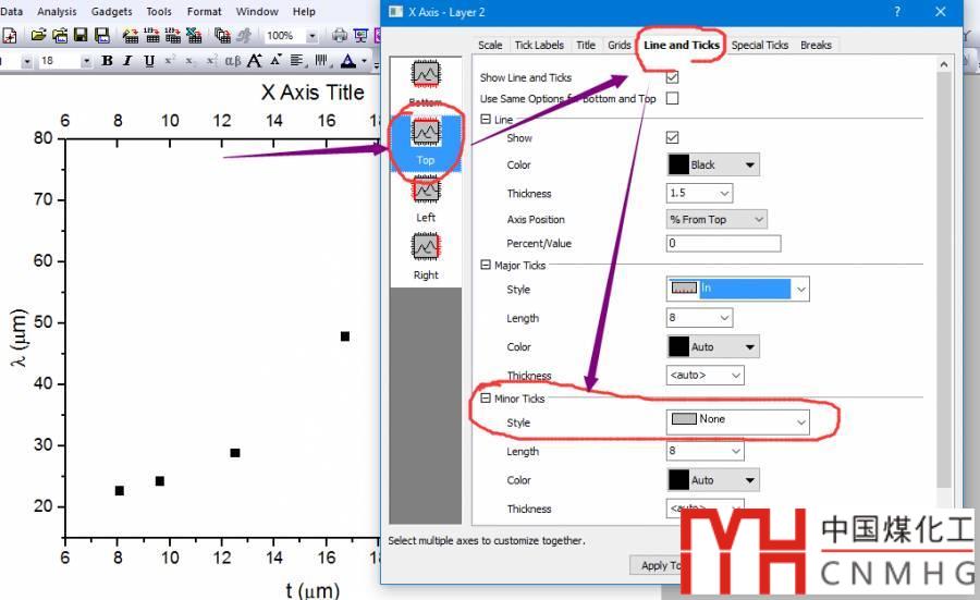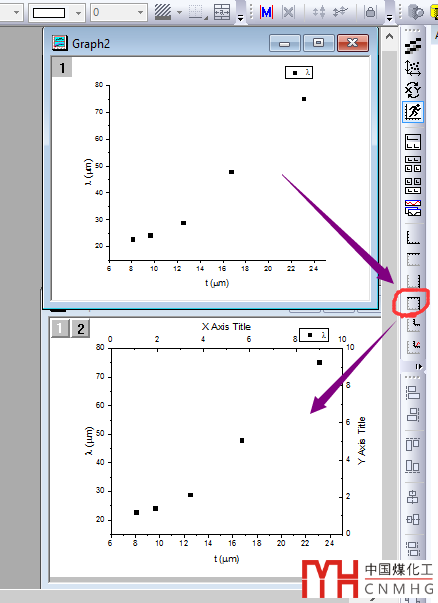 在OriginLab中,很容易繪制多Y軸單X軸的圖形,同樣可以繪制多X軸單Y軸的圖形。