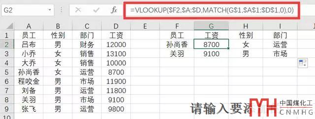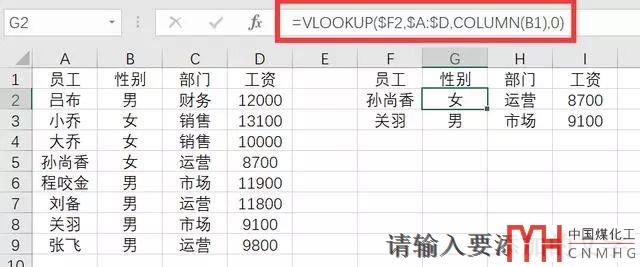 查找工資的時候,是返回第4列,查找性別的時候,返回第2列,查找部門的時候,返回第3列。