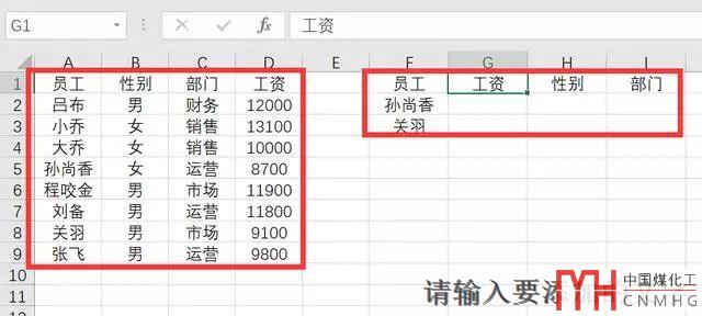 但是需要查找的表格的順序是員工、工資、性別、部門,這個是沒有任何排序原則的