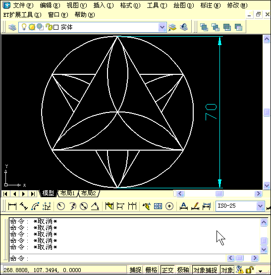 這張圖雖然看上去很復(fù)雜,只有一個(gè)尺寸,但各個(gè)圖形的尺寸都很明確,就是畫圓,連線,修剪,沒什么難度。
