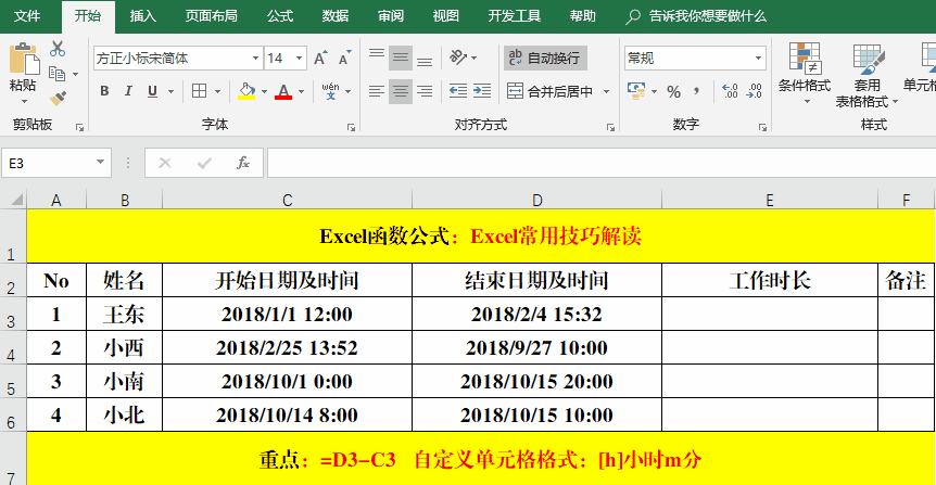 1、在目標(biāo)單元格中輸入:=D3-C3(結(jié)束日期減去開始日期)。