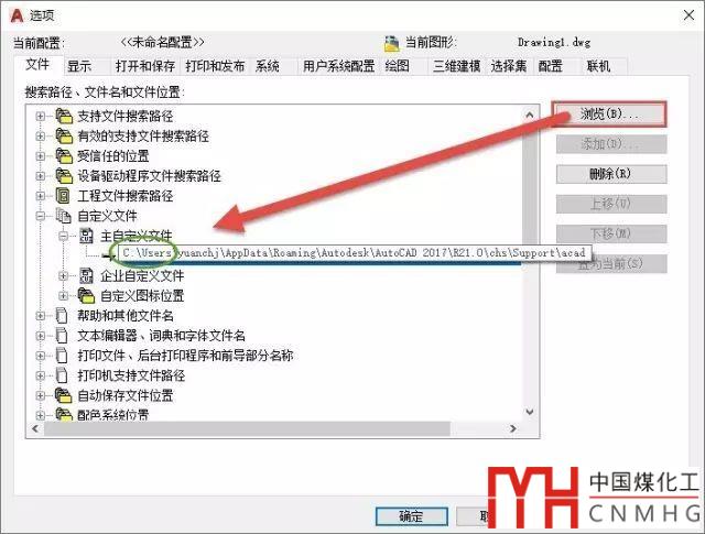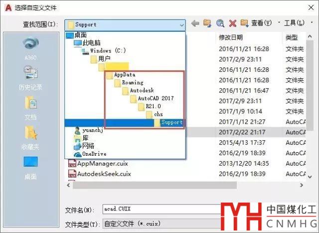 用MENULOAD或CUILOAD對話框中點瀏覽按鈕加載自定義文件,如果注冊表沒有問題,會自動定位到當前用戶名錄下的AUTOCAD的支持路徑。