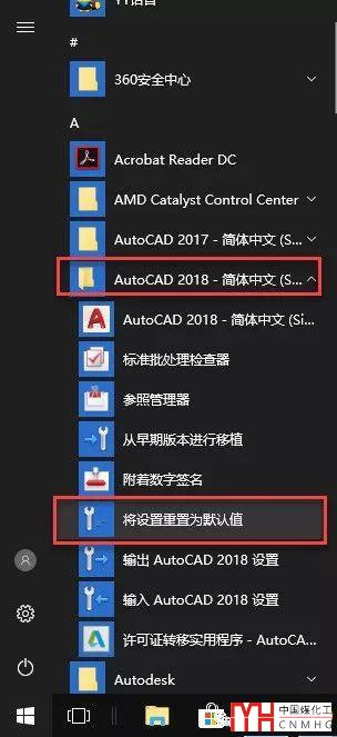 如果重置配置沒有恢復(fù),手動恢復(fù)界面文件又嫌麻煩,可以先退出AUTOCAD,然后到WINDOWS系統(tǒng)的開發(fā)菜單里找到AUTOCAD的程序項,選擇"將設(shè)置重置為默認值",如下圖所示。