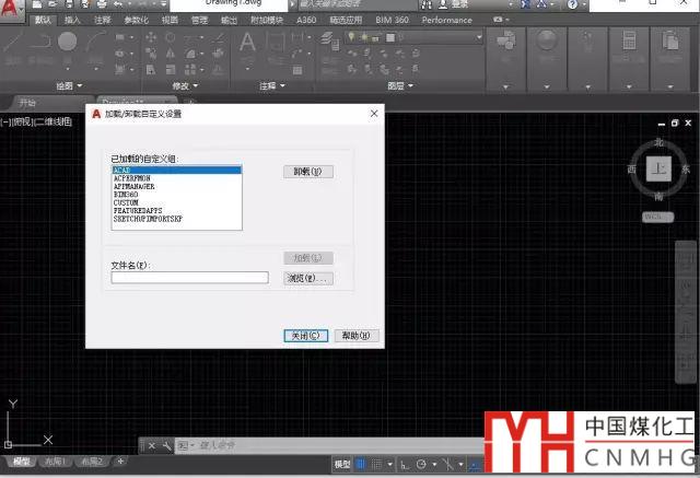 輸入MENULOAD或CUILOAD命令,回車,打開加載/卸載自定義設(shè)置對話框,如下圖所示。