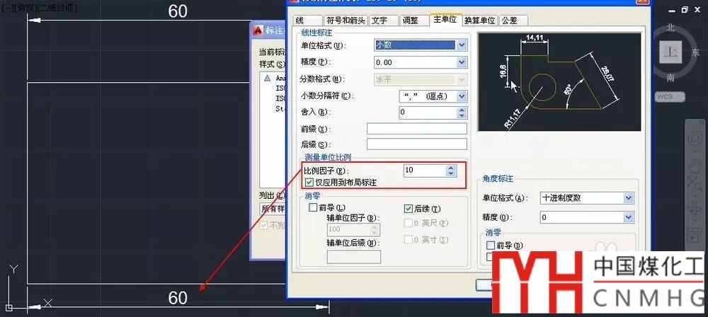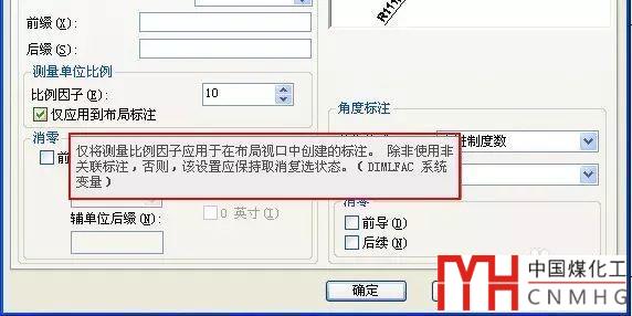 單擊“主單位”選項(xiàng)卡,找到測(cè)量單位比例,在比例因子框中輸入10,如圖所示。