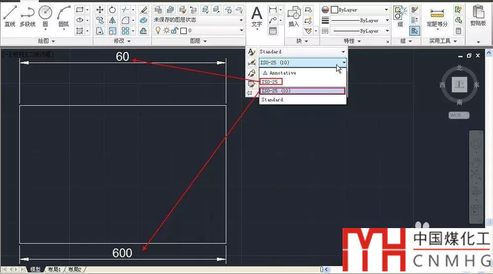 繪制一個(gè)簡單的矩形,尺寸隨意,比如60X40,用來作為標(biāo)注的對(duì)象。