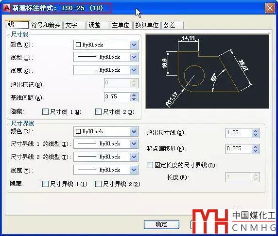 輸入D,回車,打開標(biāo)注樣式管理器,選中ISO-25,單擊新建按鈕,新建一個(gè)標(biāo)注樣式,改名為ISO-25(10),確定后進(jìn)入新建標(biāo)注樣式對(duì)話框,如圖所示。