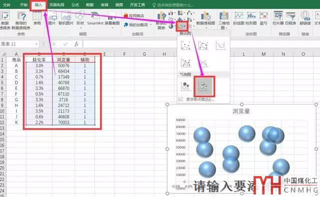 2、選擇B至D列的數(shù)據(jù),插入一個氣泡圖