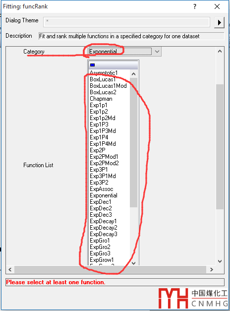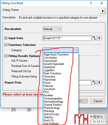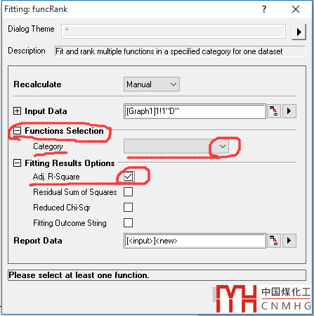 點擊Functions selection選項下category右側(cè)的向下按鈕,選擇函數(shù)分類。勾選Adj. R-square,以便在結(jié)果中顯示。