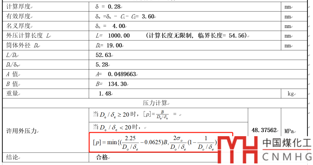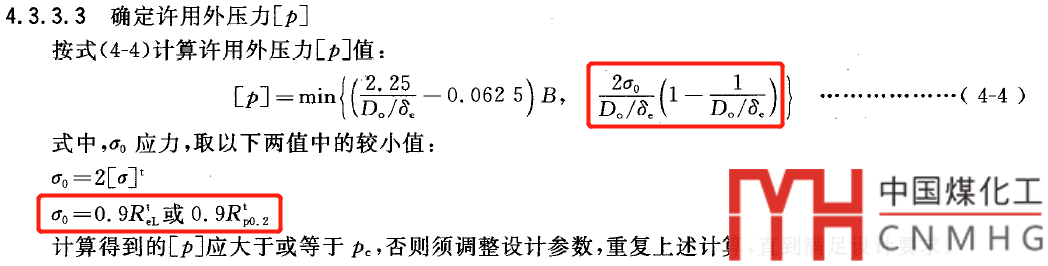 如果取值為設(shè)計(jì)溫度下的屈服強(qiáng)度,其許用的外壓為41.6MPa,而不是48.38MPa。