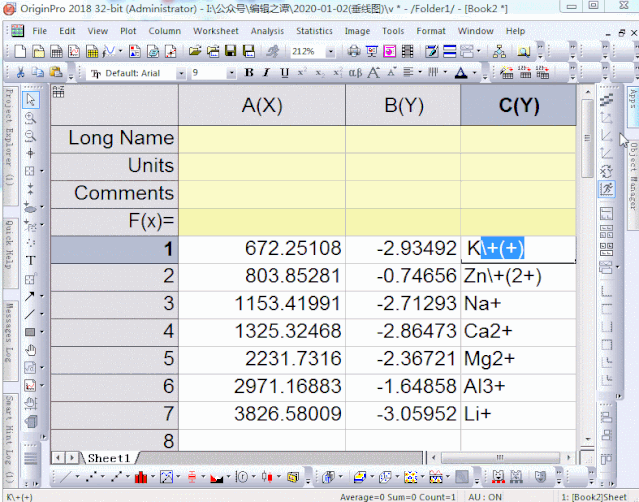 我們需要增加一列,設(shè)置好離子的化學(xué)式,注意上標(biāo)的代碼是“+()”,括號中填寫需要上標(biāo)的內(nèi)容。