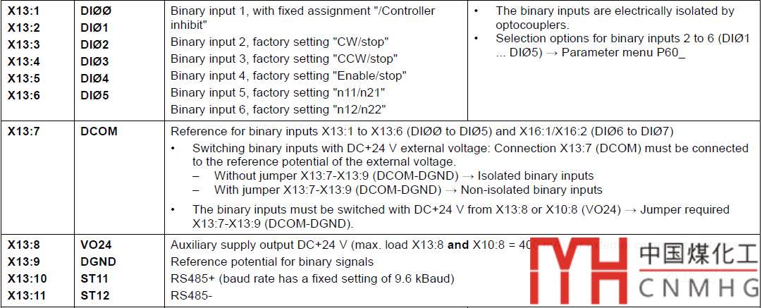 端子控制使用的數(shù)字量輸入端子【X13】。下面這張圖,是X13的端子定義圖: