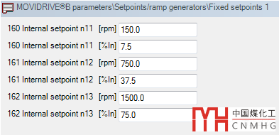 當我們把P101的值設定為【端子(Terminals)】時,若X13:2端子的輸入信號為1,電機正轉;若X13:3的輸入信號為1,電機反轉;當然,電機在轉動前,首先要【使能(enable)】,也就是X13:5端子的輸入信號為1;當X13:6的輸入信號為1時,電機以“n11/n12”參數(shù)里設置的速度運行;當X13:7的輸入信號為1時,電機以“n21/n22”參數(shù)里設置的速度運行;