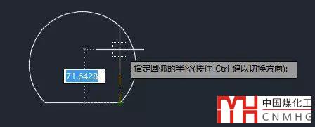 如果方向不正確,按CTRL鍵后將圓弧切換到另一側(cè),默認(rèn)就變成優(yōu)弧了,此時(shí)輸入正數(shù)半徑就會(huì)創(chuàng)建優(yōu)弧,輸入負(fù)數(shù)就會(huì)創(chuàng)建劣弧,如下圖所示。