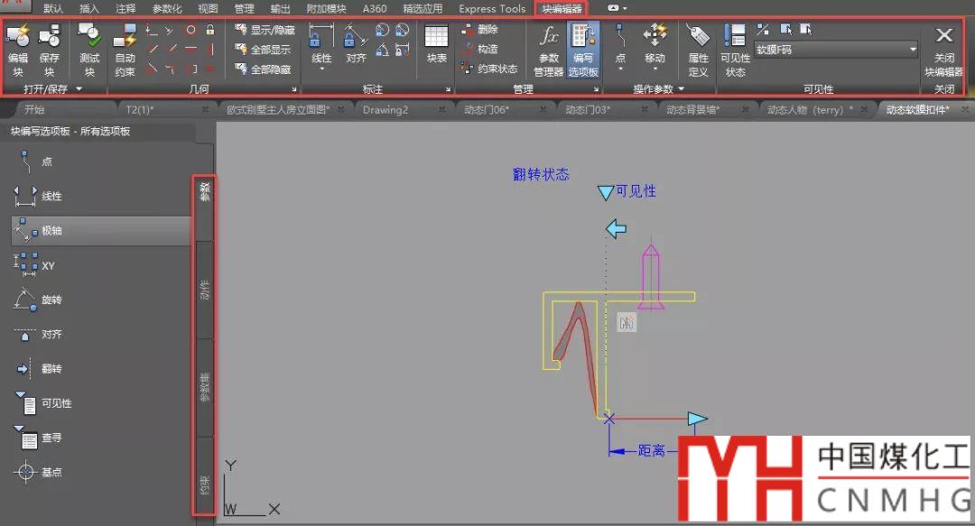 想了解這些動態(tài)塊到底怎么做出來的也很簡單,雙擊這些圖塊進入塊編輯器就能看個大概,如下圖所示。